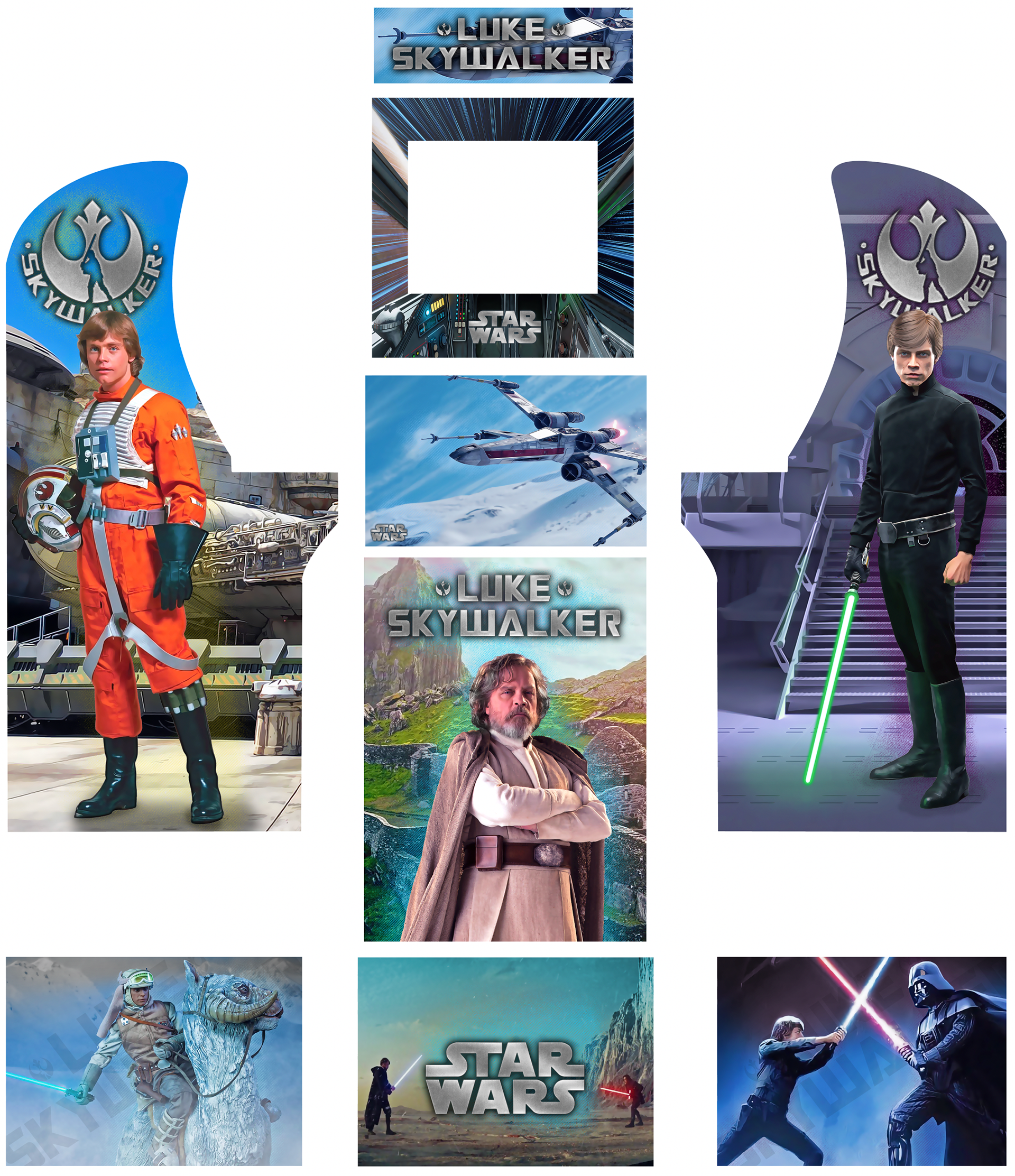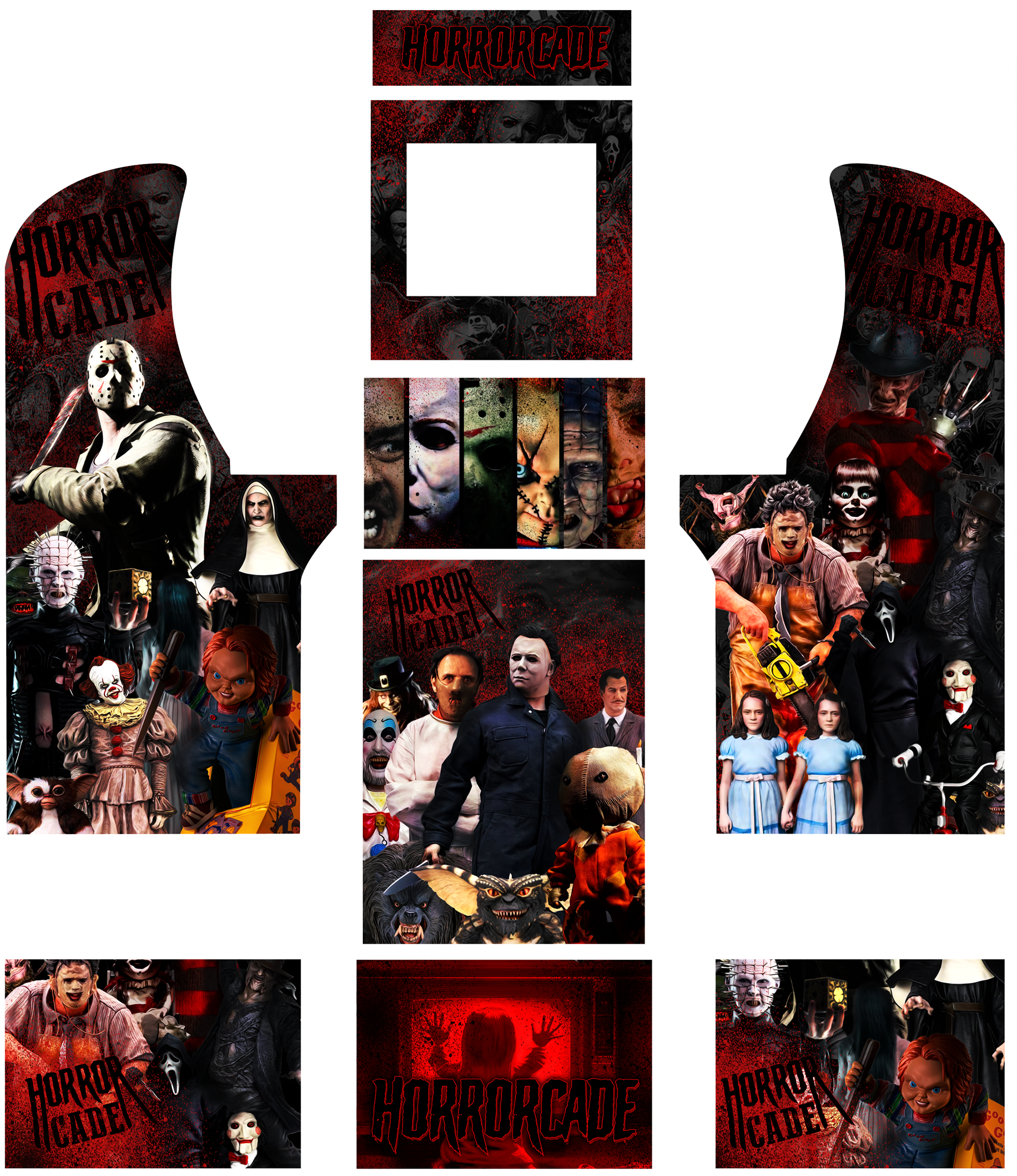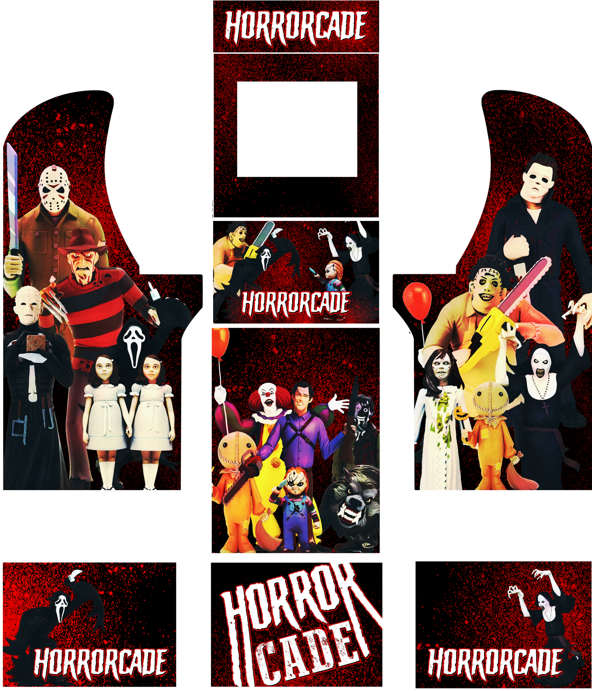 Whatever you can imagine I can design for you. I work closely with you to get all the details of your vision onto your cabinet all my graphic kits are Printed on Laminated wrap vinyl with air Egress Channels for easy installation. and are made to fit the standard Arcade 1Up cabinet